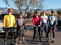 I don’t buy “It’s too cold to exercise.” Yes, at 8am I am fully covered in leg, arm, toe, and ear warmers, fingered gloves and wind vest. 6 riders come out from under the covers for an exhilarating 43-miler to Pistol Hill.